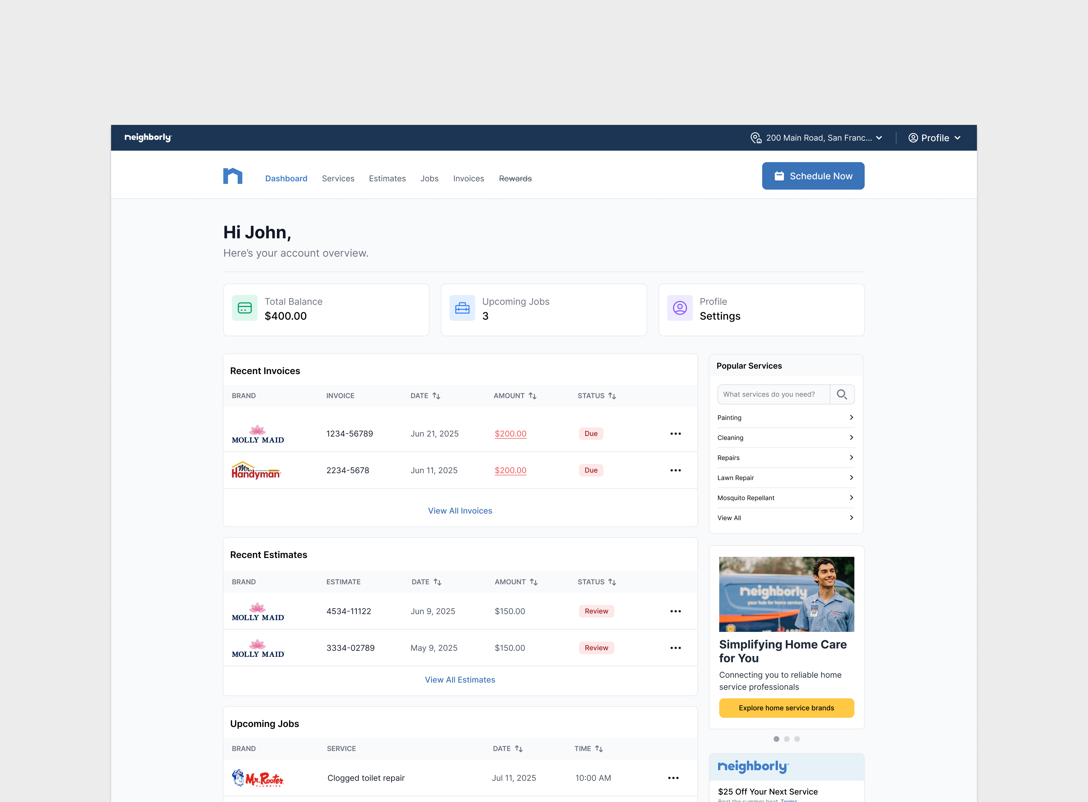 Customers managed separate accounts across brands, creating a fragmented experience and limiting visibility into their services. From a business perspective, this also reduced opportunities to cross-sell and upsell across Neighborly brands. We launched a unified Customer Portal MVP to bring everything into one place, reaching ~3,800 early users and validating demand for a centralized experience.